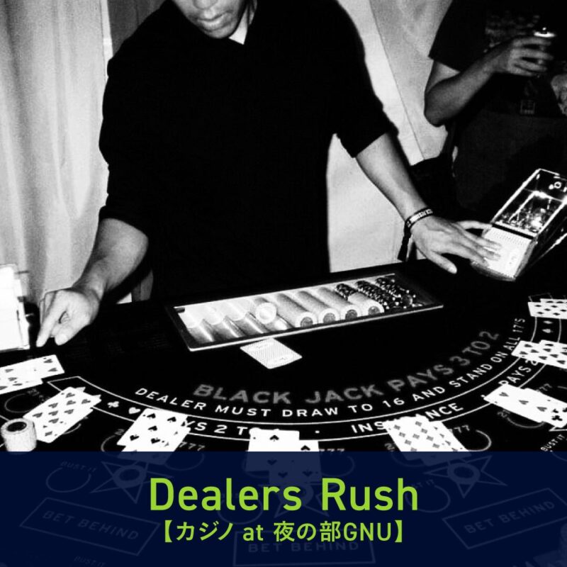土日のみ、カジノディーラーグループ「Dealers Rush」を4階のGNUに招聘しました。音楽だけでなくルーレットとブラックジャックもぜひお楽しみください。