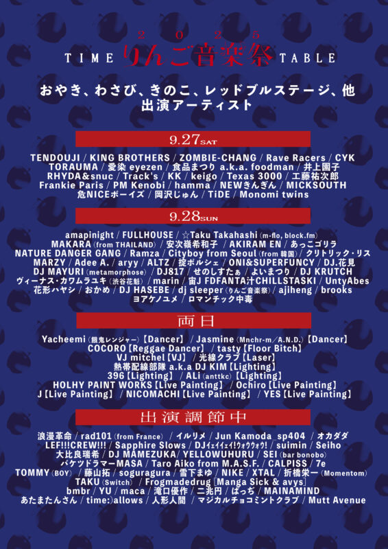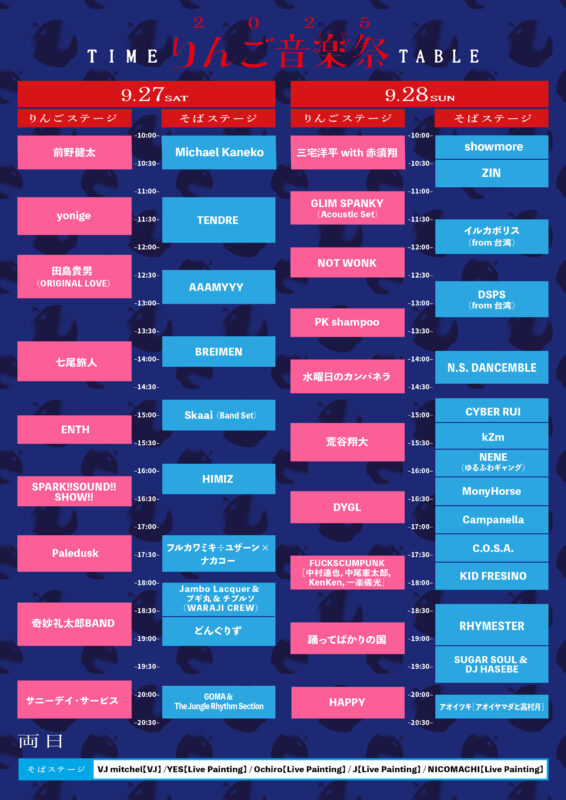 本日「りんごステージ」と「そばステージ」のタイムテーブルが発表となりました。