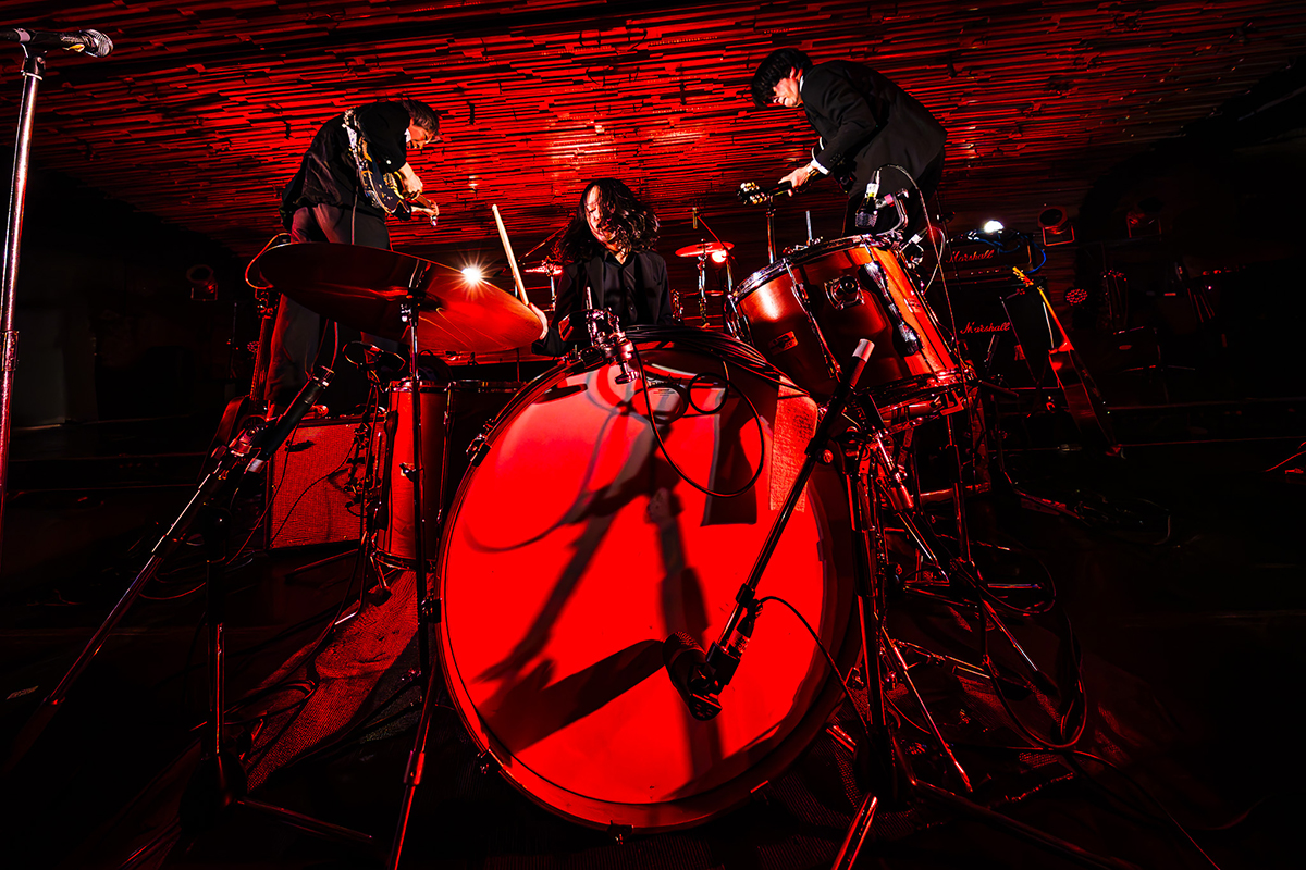 1998年に日本に先がけアメリカのインディーレーベルからデビューし、今年27周年に突入した兵庫県西宮市を拠点に世界中で活躍する3ピースのベースレスバンド、ドラムもろとも客席へと乱入し演奏する独自のスタイルや、客の頭上へと飛び込み行われる過激なマイクパフォーマンスなど、観る者を圧倒し巻き込んでゆく最強のロックンロールバンドである
