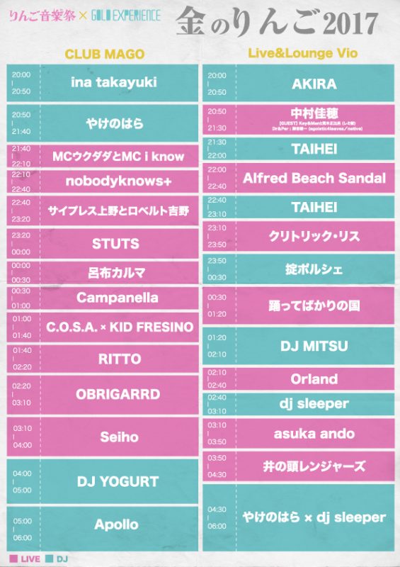 りんご音楽祭 × GOLD EXPERIENCE presents「金のりんご2017」