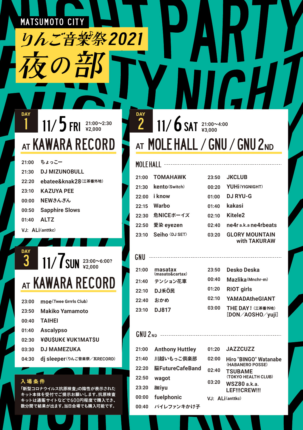 りんご音楽祭2021夜の部のタイムテーブルのPDFは