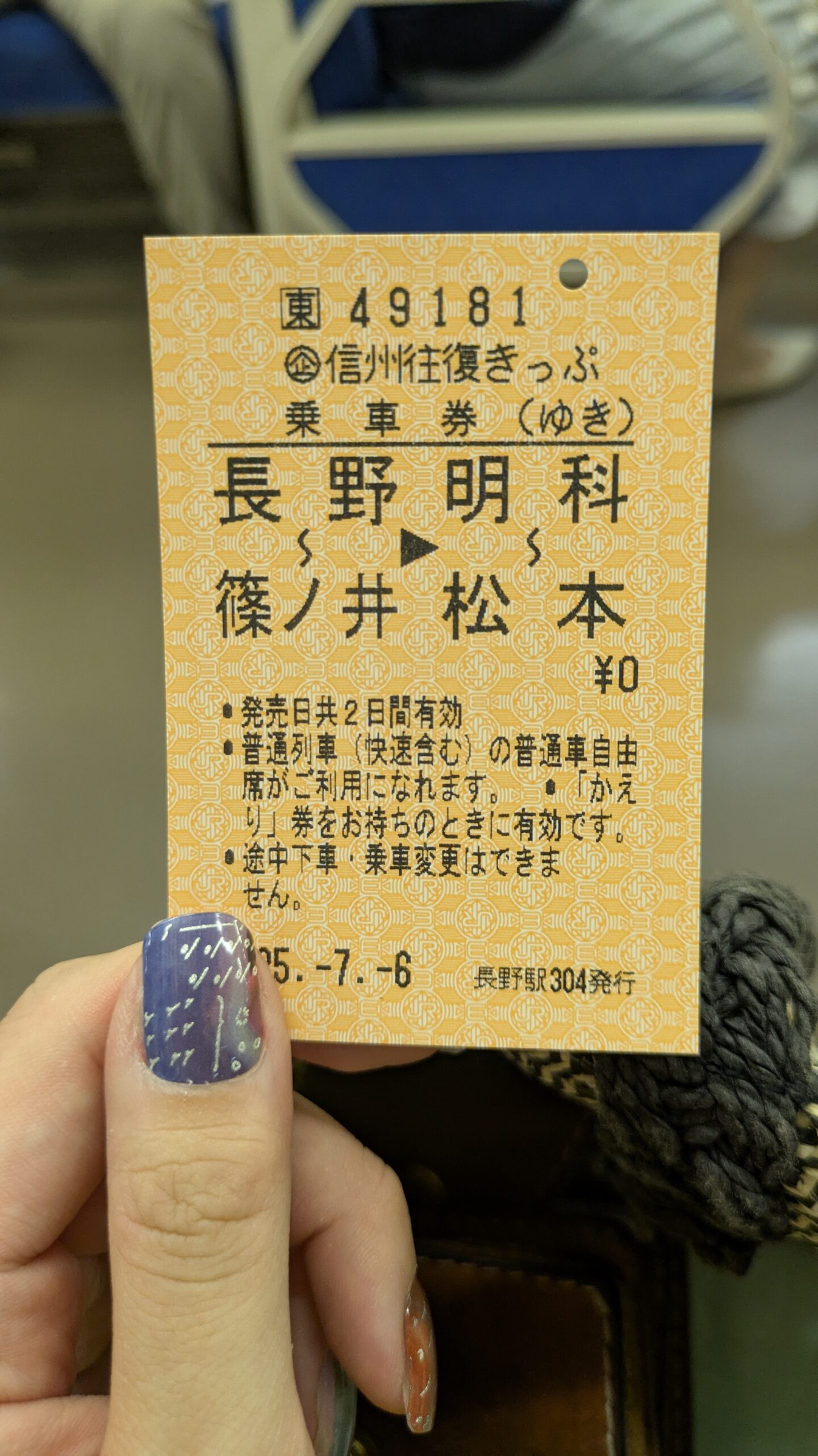 私の住んでいる長野市から松本市までは電車で1時間半ほど(券売機の『お得なきっぷ』で買える信州往復きっぷなら往復1500円になるのでおすすめ)。
