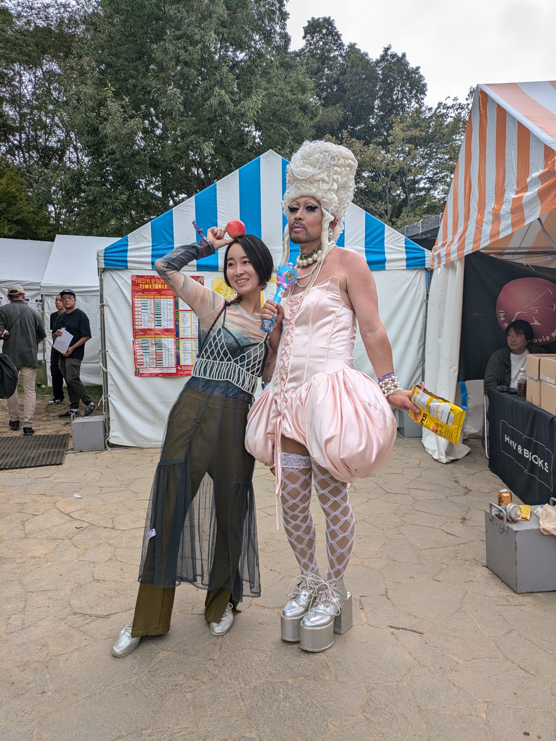 ドキドキして会場に着いたら、超ハイヒールに全身にテディベアをびっしり縫い付けたドレスを着た人が歩いていて、「これがりんご音楽祭……!」と衝撃を受けたのを覚えています(のちに出演者のtastyさんと発覚)。