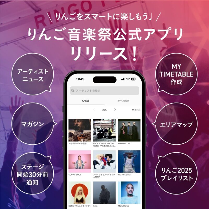 Apple Srore・Google Play Storeにて「りんご音楽祭2025」の公式アプリがリリース中です。